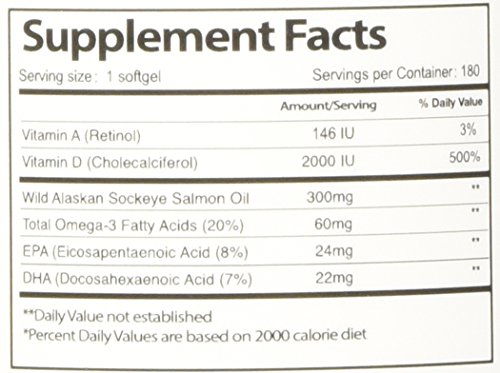 2000 IU of Vitamin D in 300mg Wild Sockeye Salmon Oil