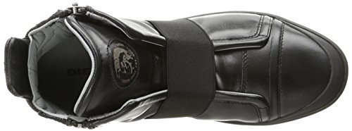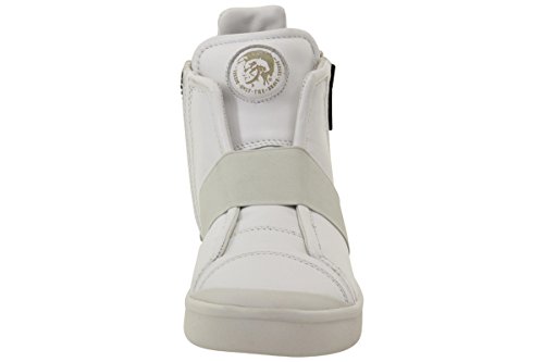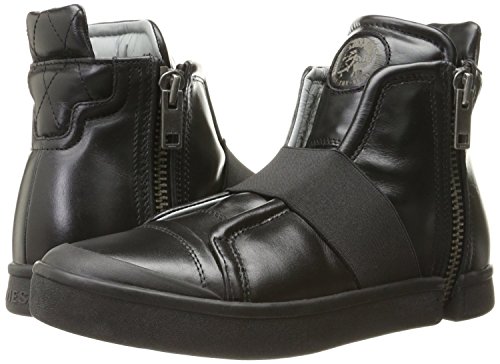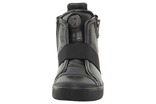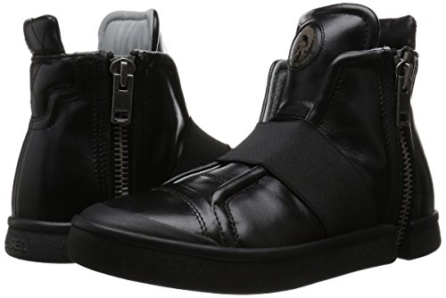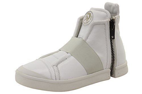 Product DescriptionUnique zip around detail on fashion hightop sneaker with elastic strap, embossed diesel logo on tongue.0