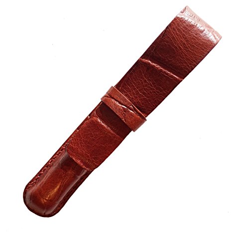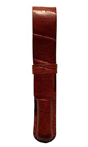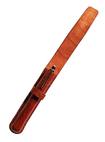 Leather Pen Case, Crocodile Grain Leather, Cognac, Handmade