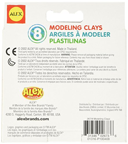 ALEX Toys Artist Studio 8 Modeling Clays contains super bright colors of soft modeling clay so young artists can create colorful three dimensional models. The soft clay is easy for little hands to shape and mold and will never dry out, harden, shrink or change shape so it can be used over and over again. No matter how you choose to shape it, our colorful clay will provide endless hours of creative fun! Includes 5.9oz. (167g) of clay in 8 colors. Recommended for children 3 years of age and older.Feature