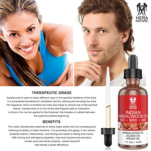 -. Title : Indian Sandalwood Essential Oil, 100% Pure, Therapeutic Grade with Jojoba & Argan Oil - 30ml (1oz)