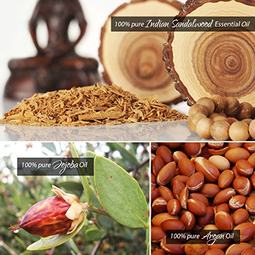 -. Feature : TOP-QUALITY : Our all natural Sandalwood Essential Oil is from the heartwood of the Santalum tree in India, and is widely known for producing the best premium sandalwood oil. This sandalwood essential oil is very powerful and is widely enjoyed for its warm, gentle scent that's unassuming yet quite beautiful. / OUTSTANDING SCENT: Open the bottle and you'll be greeted by a sweet, aromatic scent. Sandalwood oil from India has long been used as a close-wearing body fragrance, and is great for using as an ingredient in homemade products such as perfume. / THERAPEUTIC GRADE DROPPER: Sandalwood oil improves memory and stimulates concentration. It keeps your brain cool and relaxed, and saves you from unnecessary stress and anxiety. / A UNIQUE FORMULA - Sandalwood essential oil helps soften skin by increasing and restoring its ability to retain moisture. It is powerfully anti-aging, moisturize and hydrate skin, face & hair. Mixes well with rose oil, geranium, wild coconut, tea tree and more. All natural with no chemical added - With Dropper to get the exact amount you need without any waste - ready for use! - MONEY BACK GUARANTEE! / WITH JOJOBA & ARGAN OIL : 100% pure and natural. Amazing for Moisturize and hydrate skin, serving as a wonderful addition in your anti-aging skincare. JOJOBA OIL : has immense uses for skin, hair and face. It is full of various organic and mineral elements that can provide you with naturally groomed and glowing skin. ARGAN OIL : Origin of Morocco, this oil is widely favored by many for it's cosmetic use. It's packed with nutrients and fatty acids which are greatly beneficial to the skin and hair.