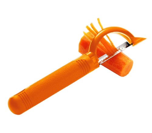 - Feature : Set features a green straight peeler, red serrated peeler and orange julienne peeler; ergonomic oversized santoprene handles for easy grip / Use straight peeler for basic vegetable and fruit peeling; serrated for soft fleshy fruits; julienne to create matchsticks / Each peeler is made with double edge stainless steel blades, pointed end / Right or left handed; / Some of the highest rated tools on the market today