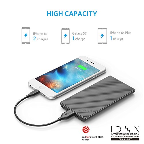 -. Binding : Electronics -. Brand : Anker -. EAN : 0848061067316 -. Feature : The Anker Advantage: Join the 20 million+ powered by America's leading USB charging brand. / Designed for iPhone: Uses the same battery charging tech as your iPhone, with enough capacity to offer your iPhone6 or 6s almost 2 full recharges. / Portability: Its slimline, light design that ensures it slips unnoticed into your pocket or pack. A silicon shield ensures your iPhone and PowerCore remain scratch-free. / Award-Winning: Received the prestigious Red Dot Design Award for its innovative and user-friendly design. And a finalist in IDEA, the International Design Excellence Awards. / What You Get: PowerCore Slim 5000, travel pouch, Micro-USB cable, welcome guide, our worry-free 18-month warranty and friendly customer service. (No Lightning cable included) -. Label : Anker -. Manufacturer : Anker -. Model : AK-A1250011 -. MPN : AK-848061067316 -. PackageQuantity : 1 -. PartNumber : AK-848061067316 -. ProductGroup : Wireless -. ProductTypeName : PHONE_ACCESSORY -. Publisher : Anker -. Studio : Anker -. Title : Anker PowerCore Slim 5000 Portable Charger, Ultra Slim External Battery with iPhone battery technology and Fast-Charging PowerIQ, Pocket Friendly Power Bank, Perfectly designed for iPhone -. UPC : 848061067316