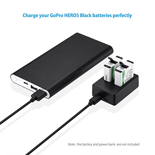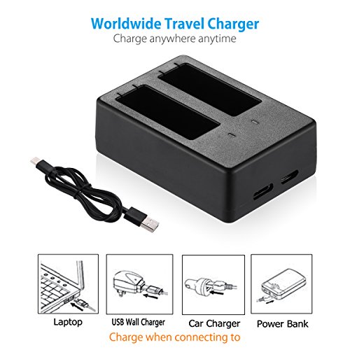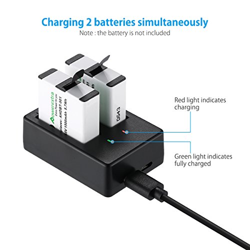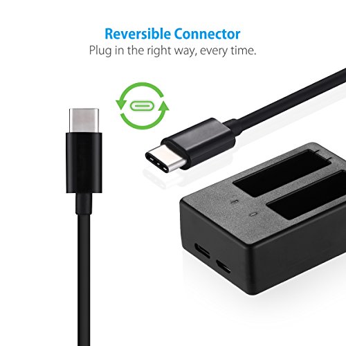 Powerextra Dual Battery Charger with USB Type C Cable for GoPro HERO5, HERO 5 Black