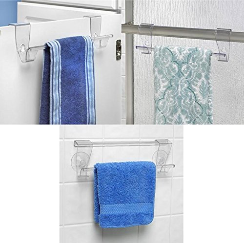 3 in One Over the Cabinet Door Towel Bar w/ Removable Suction Cups