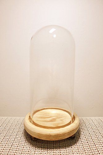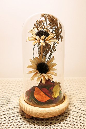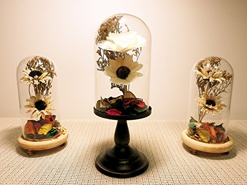 Ryocas Decorative Holder - Romantic Artificial Dried Flower Bouquet Plant Crystal Glass Dome Cloche Bell Jar Terrarium With Wood Stand Pedestal For Home Decor Wedding Centerpiece, 8-Inch