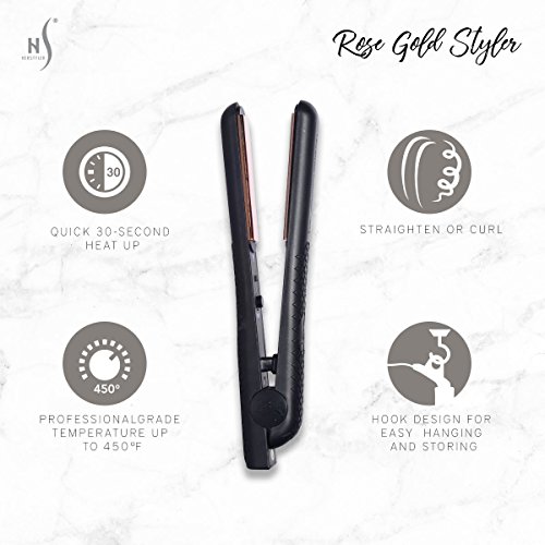 Herstyler Titanium Flat Iron | 1.25 Inch Rose Gold Hair Straightener with Wide Floating Plates and Temperature Control | Go for Rose Gold