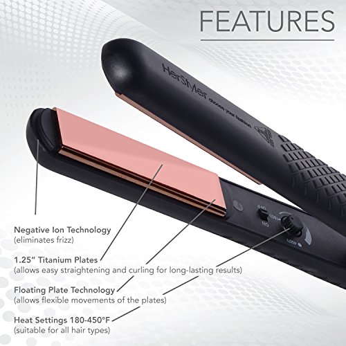 TEMPERATURE CONTROL – The Herstyler Titanium Hair Straightener offers a temperature range up to 450 degrees to let you control temperatures to suit your needs and hair type.