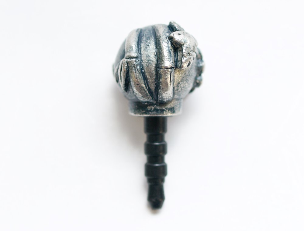 Accessories that you put on earphone jacks such as smart phones that combined the crest of Katakura with the pattern of bamboo and sparrow same as Masamune Date.
