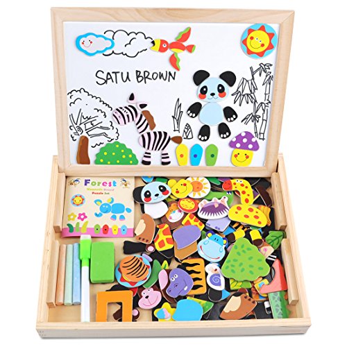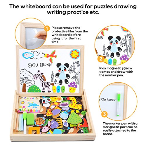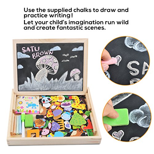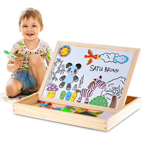 Satu Brown Satu braun Magnettafel Puzzle-Spiele 100Stuck Holz Kinder Spielzeug, Double Face Puzzle & Zeichnen Staffelei Tafel beliebtes Educational Lernen Spielzeug
