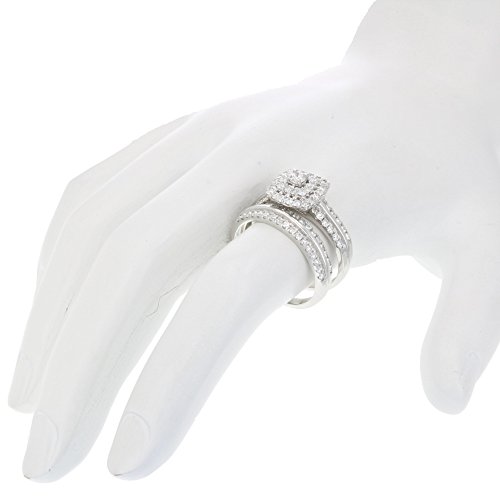 -. Feature : 30 Day Easy Returns. Jewelry Gift Box Included / 14K White Gold / Diamond Carat Weight - 0.87 ctw / Center Diamond Ct.Wt. - 0.10 ctw ; Side Diamond Ct.Wt. - 0.77 ctw / Engagement Ring: Width - 9 MM ; Length - 19 MM ; Shank - 3.5 MM ; Wedding Band: Width - 3.5 MM