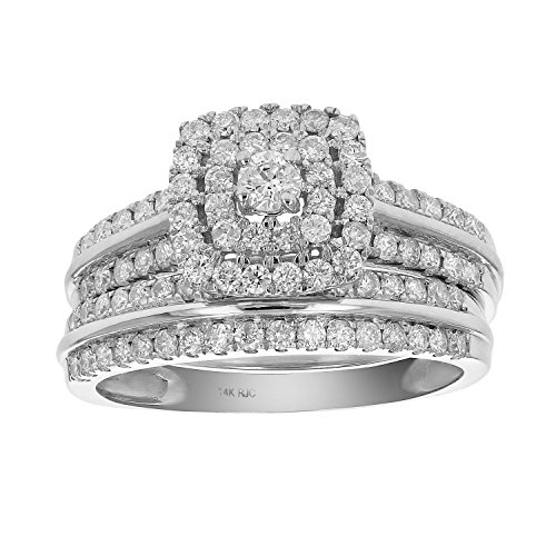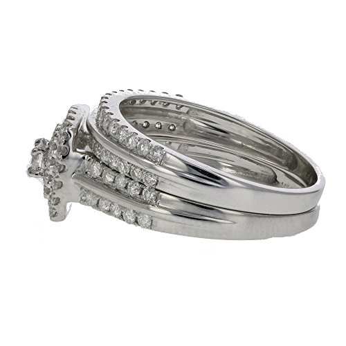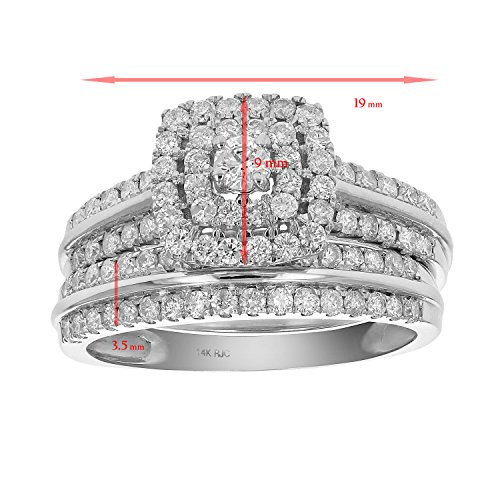 -. Title : 7/8 CT Diamond Halo Cushion Wedding Engagement Ring Set 14K White Gold