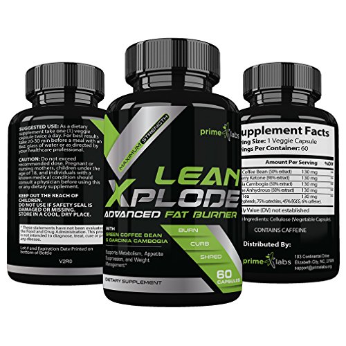 Lean Xplode increases fat burning without requiring more time at the gym. It CURBS your appetite so you don't feel deprived and head to the fridge for late night munchies. It HELPS carbs gets used as muscle fuel or burned as energy rather than being stored as fat. It REDUCES stress while boosting mood and energy so you feel great, less likely to reach for comfort foodEach capsule of Lean Xplode contains an explosive 750 mg of our highly potent thermogenic blend of Garcinia Cambogia, Raspberry Ketone, Green Tea Extract, Green Coffee Bean and Natural Caffeine, combined into capsules for maximum fat burning results and boosted energy. The powerful Lean Xplode formula works synergistically with your body to deliver the best weight loss results possible.