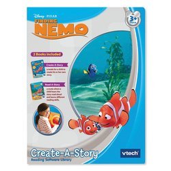 -. Binding : Toy -. Brand : VTech -. EAN : 0050803830403 -. Feature : Includes two colorful story books; Read-A-Story features 24 pages; Create-A-Story features 14 pages / Features story from popular movie, "Finding Nemo" / Teaches reading skills such as word identification, reading comprehension, phonics, and more / Works both on-the-go and with the TV / Includes a personalization feature where a child can enter her very own name and see it appear on the TV -. IsAdultProduct : 0 -. Label : VTech -. LegalDisclaimer : NEW NEVER OPENED PLASTIC RETAPED BOX CORNERS A LITTLE SCRAPED -. Manufacturer : VTech -. Model : 80-083040 -. MPN : 80-083040 -. PackageQuantity : 1 -. PartNumber : 80-083040 -. ProductGroup : Toy -. ProductTypeName : TOYS_AND_GAMES -. Publisher : VTech -. ReleaseDate : 2008-08-08 -. Studio : VTech -. Title : VTech - Create-A-Story - Finding Nemo -. UPC : 050803830403 -. Warranty : Y