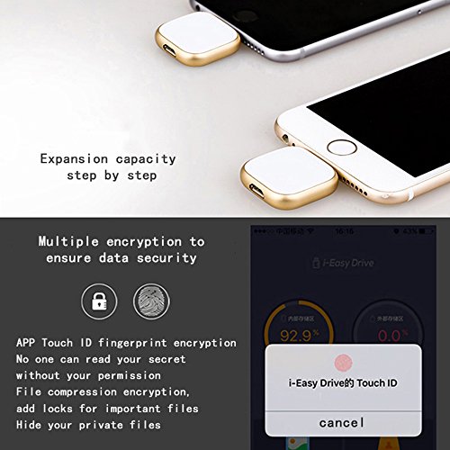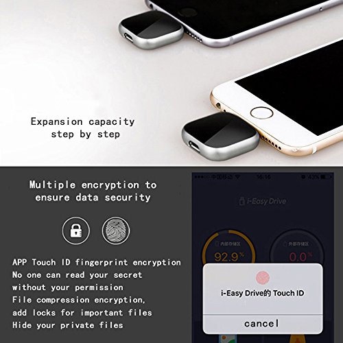 -. Feature : •Easily transfer photos and videos between (for) iPhone, iPad, PCs and Mac Computers. [iOS10 Compatible] Please search and free download App(i-Easy-Drive) from App Store.(Only work by this App) / •Convenient Design: It's a plug and play device, thus no drivers are needed for it to work / •Compatible with the latest (for) iOS devices and iOS 8 system, no more annoyed warning message. / •Made for iPhone,iPod, iPad Mini,Window PC ,Mac and so on External memory.Due to the inner system and procedure data will occupy some space and the real capacity will reduce lightly. / •Fast Performance: Directly plugs into your lightning port and USB port; experience up to 80 MB/s reading and 40 MB/s writing speed with USB 2.0 port. • Lightning Port Speed: up to 13MB/s reading speed, 9MB/s writing speed.
