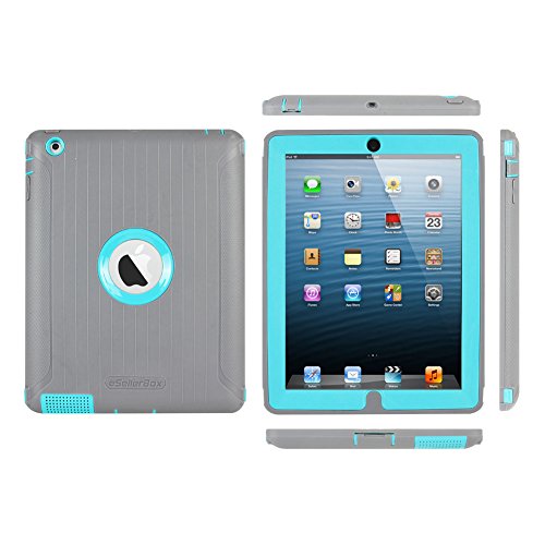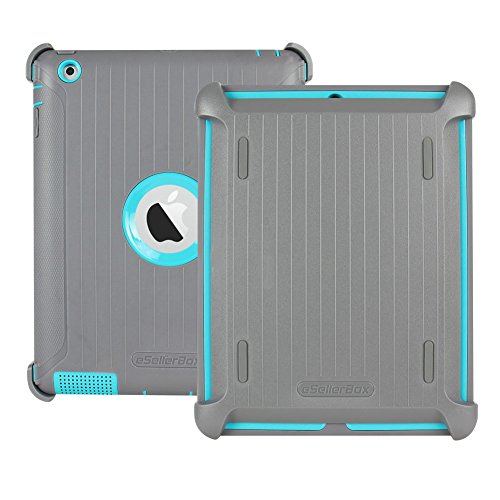 iPad 2 3 4 Case,by eSellerBox Heavy Duty Full-body Rugged Armor Hybrid Multi-Layer Defense Protective With kickstand Stand Holder Built-in Screen Protector Case Cover For apple iPad 2/3/4 Grey&Teal