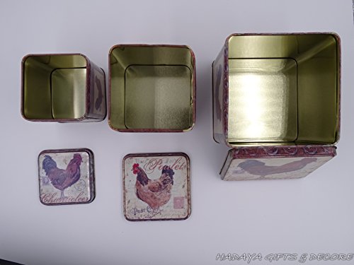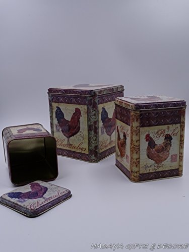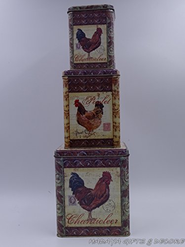 Vintage look "Rooster" THEMED Storage Tins, Shabby Chic, Set of 3