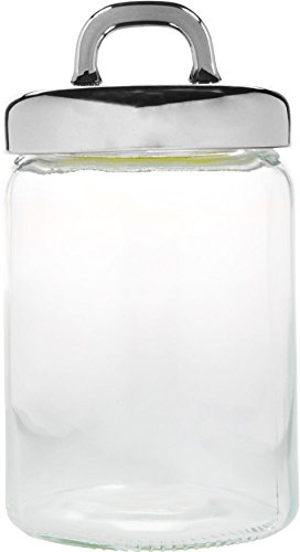 Loop Canister with Silver Lid-54 Oz. Clear Glass Round Chalkboard Jar with Tight Lids for Bathroom or Kitchen - Food Storage Container