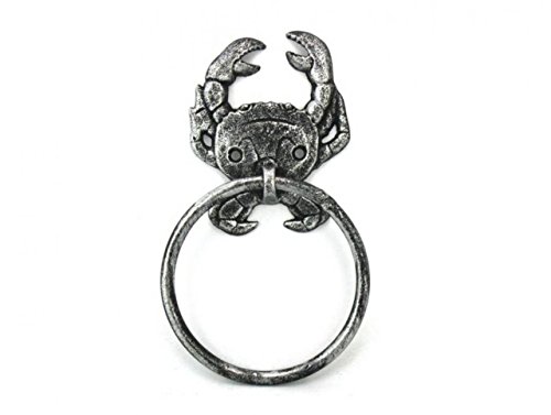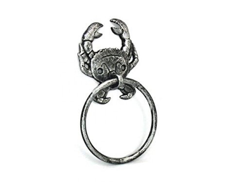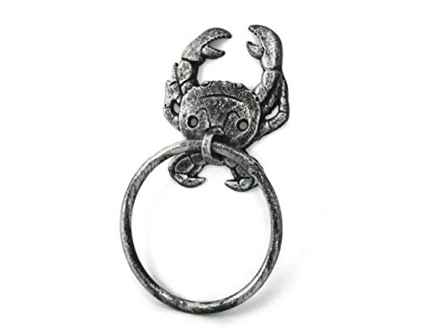 Hampton Nautical K-9006-silver Antique Silver Cast Iron Crab Towel Holder 8" - Crab Decoration - Beach Bathroom Decor - Cast Iron