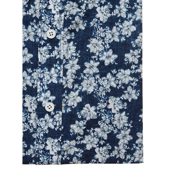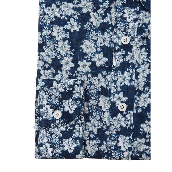 ARTISTIC MOOD 라인으로 네이비&화이트 컬러톤을 사용한 빈티지한 무드가 담긴 플라워 프린트셔츠로