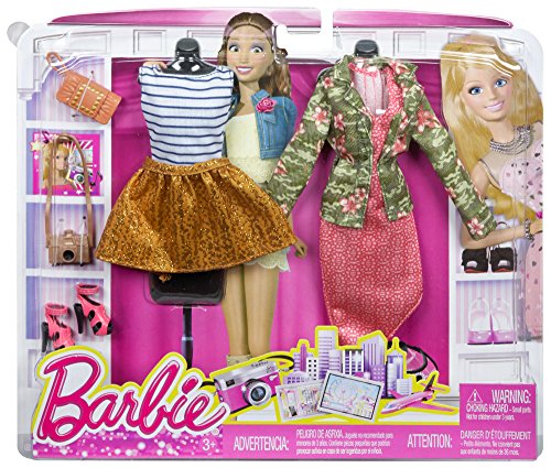 - The sightseeing set includes four fabulous fashion pieces to mix and match: a striped top, sparkly golden skirt, graphic print tapered coral dress and camouflage with floral-print jacket