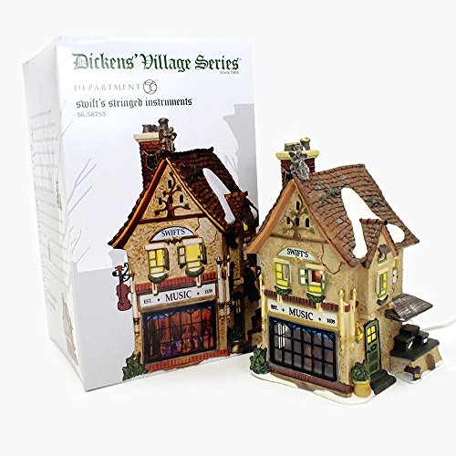 Introduced in 2006 for the popular Dickens' Village, this lighted porcelain building features an interior scene showing the hand made wares of the music artesian. A perfect gift for anyone who plays an instrument or loves music. Designed and manufactured exclusively by Department 56.Feature