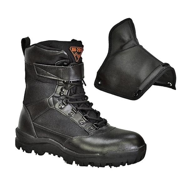 網状金属保護材入りの甲ガード付き+鉄芯入り!!山仕事や草刈り作業での切創被害の緩和に。甲ガードは着脱可能で、透湿耐水構造の生地使用なので用途に合わせて快適にご使用いただけます。 |