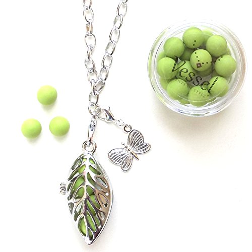 BEAUTIFUL AND UNIQUE - Nature-inspired fashion sets the tone for this alluring Leaf Locket. Basic, yet bold and beautiful describes the understated yet absolutely appealing Alexa Chain. Rhodium plated zinc alloy creates a high-end silver-tone finish. 1 1/2"h x 3/4"w Locket. 30" Chain. Set includes a darling silver plated Dragonfly Charm and set of Apple Green colored ScentSpheres.