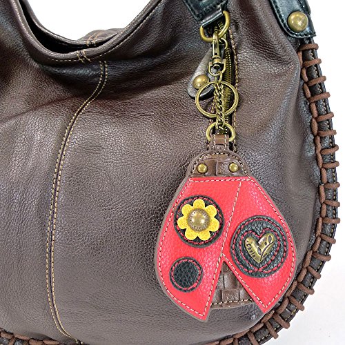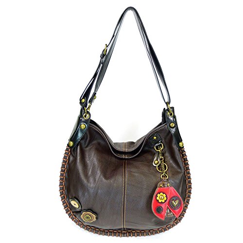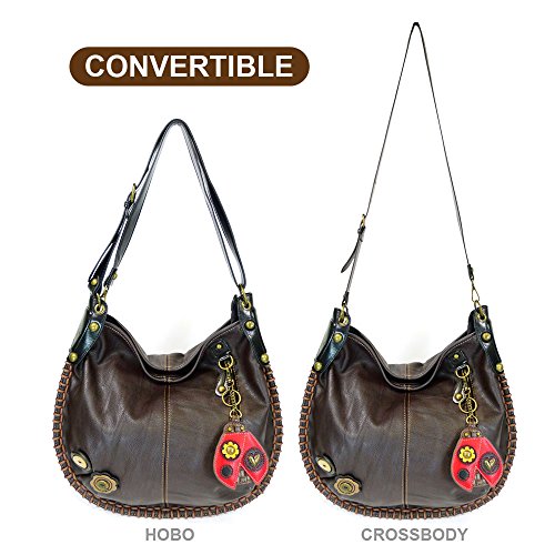 Chala Handbag Charming Hobo Crossbody Large Tote Bag Dark Brown Ladybug Vegan leather