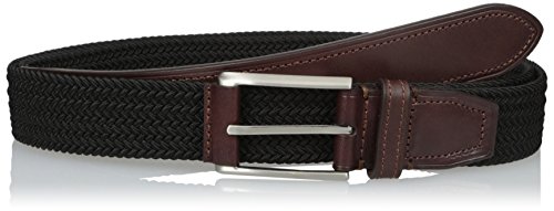 35mm braided nylon elastic stretch belt with leather covered buckle and tip and tab