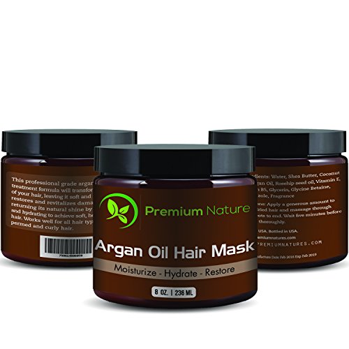 -. Feature : NO SPLIT ENDS: This deep conditioner systems works itself deep into your scalp to bring your hair back to life. If you suffer from hair breakage and split ends using this coconut oil product will end those problems. / EFFECTIVELY PROTECTS YOUR HAIR AGAINST HEAT: At Premium Nature we know that everyone's hair suffers from heat damage over time. Using a blow dryer, iron or curler is a daily activity for many of us. So we blended special moisterizers and protectants to ensure that heat will no longer damage your hair. / ANTI-INFLAMMATORY & ANTI-BACTERIAL: Our Hair Mask also has special Anti-Inflammatory and Anti-Bacterial properties. With a powerful combination of Green Tea, Jojoba Oil, Aloe Vera and more our formula releases free radicals with antioxidant properties that also nourish your scalp and filter out bacteria to give you a clean and healthy scalp / AMAZING ALL NATURAL INGREDIENTS: This Argan Oil Hair Mask features the amazing ingreidents of Argan Oil, Coconut Oil, Vitamin A, Vitamin E, Shea Butter & more! / REDUCES FRIZZINESS: If you constantly suffer from frizzy hair then you need this in your life! The Moroccan Oil in this product works to moisturize your hair and leaves it looking smooth, & feeling full and soft.
