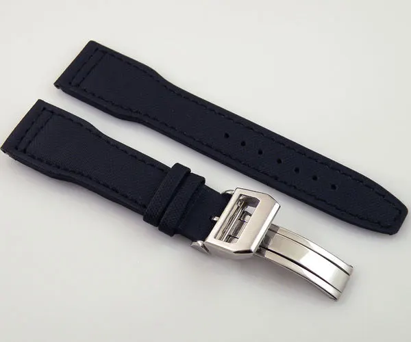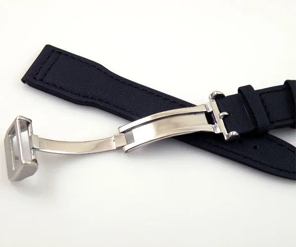 | [해외] 파르 니스 22 미리메터 블랙 패브릭 가죽 배포 버클 스트랩 맞춤 시계 남성 P133 |