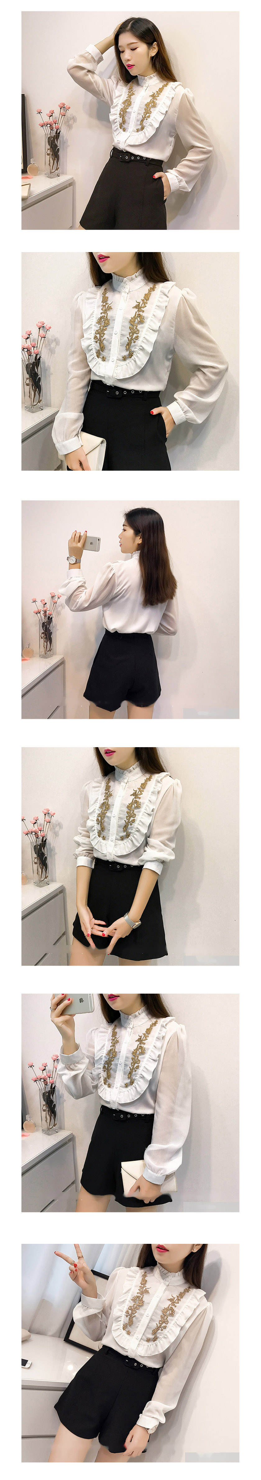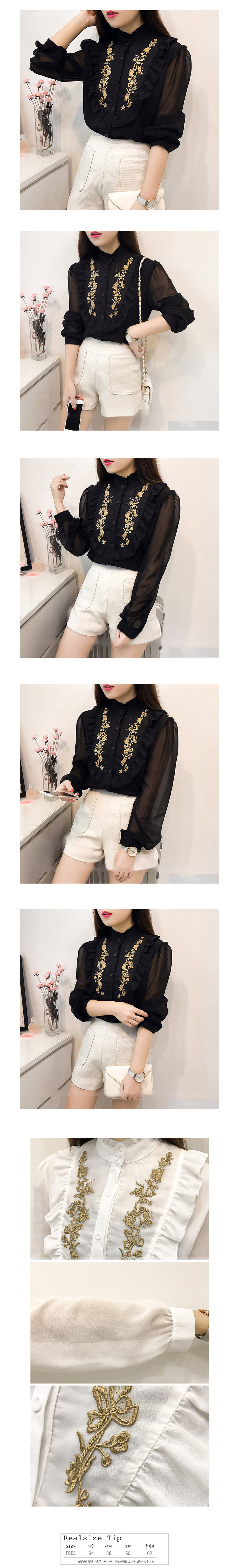 Direct import, autumn frill embroidery chiffon see-through blouse Classic look cute put on every day
