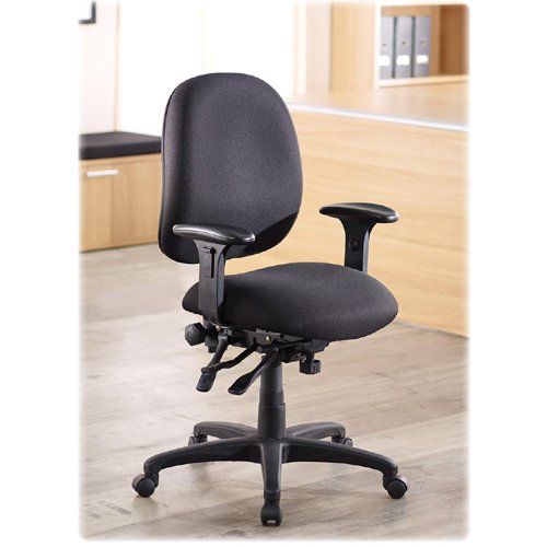 -. Feature : Built-in arms adjust in height from 7" to 9" and in width / Functions include pneumatic seat-height adjustment from 16-1/2" to 19", seat-glide mechanism, 360-degree swivel, tilt, tilt tension and tilt lock / Seat measures 20" wide x 20" deep / Built-in arms adjust in height from 7-inch to 9-inch and in width