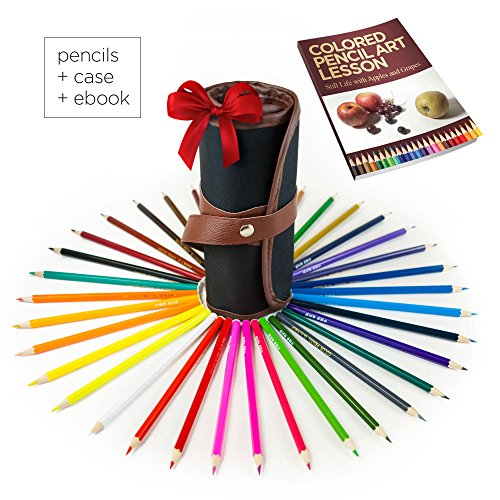 Colored Pencil Set with Canvas Wrap And Art Lesson Ebook - Art Drawing Set with 36 Assorted Colors and Rollup Art Supply Case for Fine Art, Sketching, and Adult Coloring Books