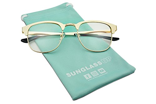 Classic Square Horn Rimmed Half Frame Metal Clear Lens Sun Glasses Unisex