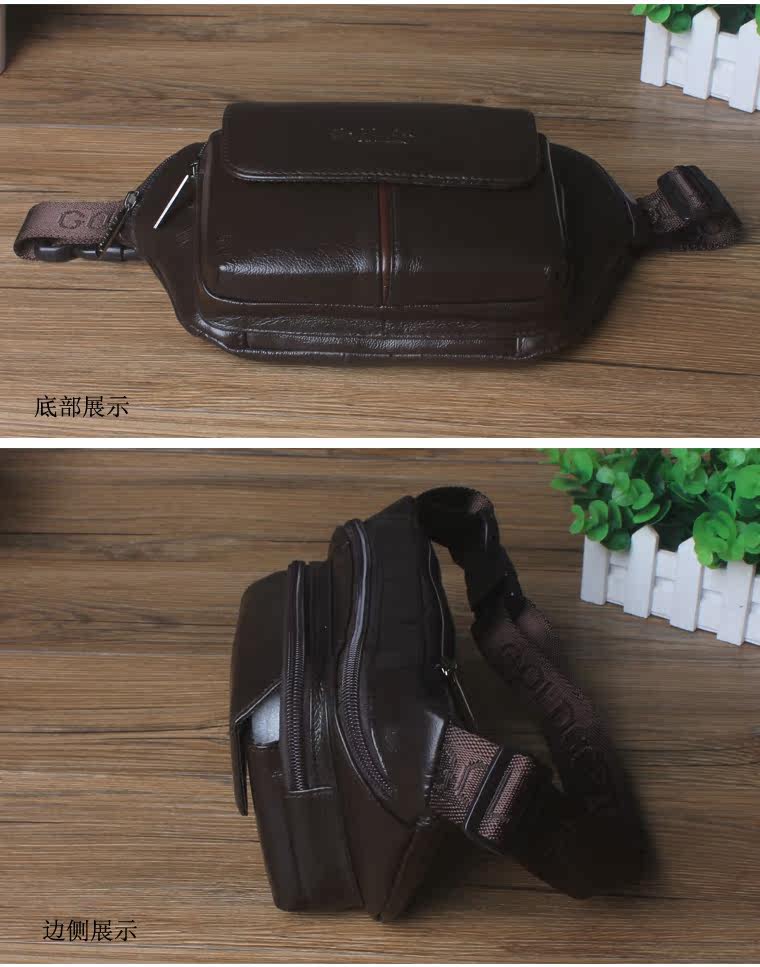 头层牛皮腰包 休闲男包 真皮腰包 韩版潮流手机包 运动户外