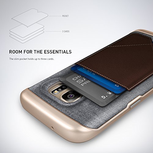 - Feature : Safely Slim: Join the millions of satisfied customers protected by Caseology. / Practical Fashion: A combination of real leather and high-quality fabric makes this two-tone pocket case eye-catching as it carries your essential cards. / Reliable Protection: Real leather and premium fabric fused with TPU provides drop protection and a polycarbonate bumper ensures a secure grip. A raised lip guards the screen from scratches. / High Compatibility: Compatible with Samsung Galaxy S7 - Verizon, AT&T, T-Mobile, Sprint, International models. (Not Compatible with Galaxy S7 Edge.) / **Due to image rendering and variation in color displays, actual color may differ from photo.**