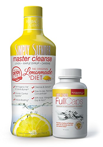 Simply Slender Master Cleanse is a powerful premix that has synergistically blended the traditional lemon juice, cayenne pepper and grade B maple syrup recipe with modern ingredients that add to the benefits of this diet and cleansing program. Delicious lemon flavor 32 oz master cleanse drink and 120 ct bottle of full caps will thermogenically shred the pounds while you feel full and triumphant