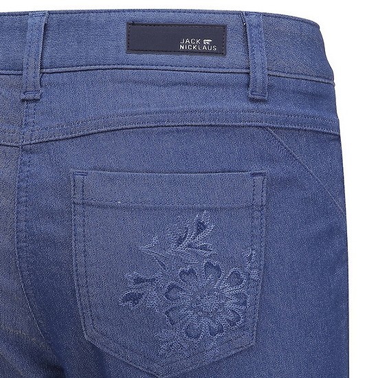 - 백 포켓의 아플리케로 포인트를 준 여성 팬츠.