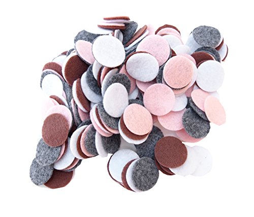 200 Piece Charcoal, Light Pink, White, Cocoa Color Assortment of 1 inch Felt Circles