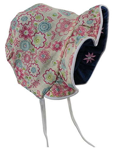 -. Binding : Apparel -. Brand : N'Ice Caps -. Color : Pink -. Department : baby-girls -. Feature : Reversible with piping in brim / Solid side has embroidered daisies on crown, other side is floral P.R.Int / Adjustable ties / Fully lined / Rounded arrow back -. ProductGroup : Apparel -. ProductTypeName : HAT -. Title : N'Ice Caps Baby Girls Solid to P.R.Int Reversible Sun Bonnet