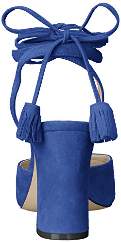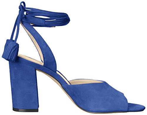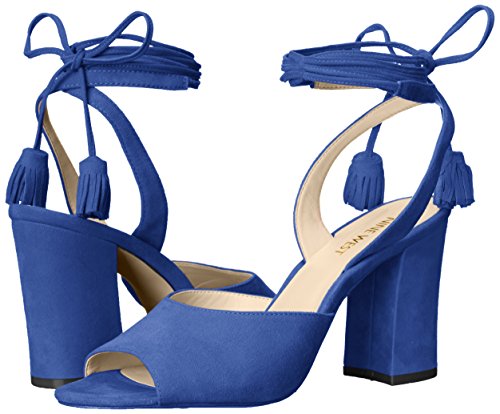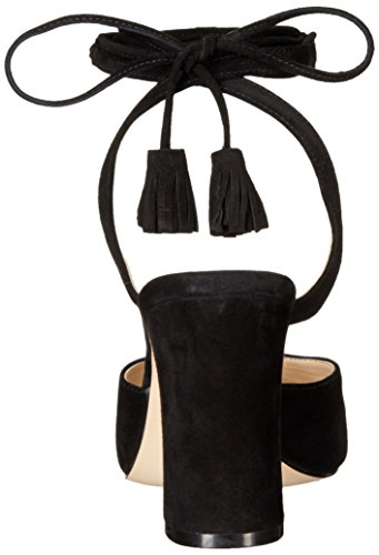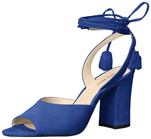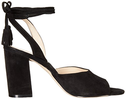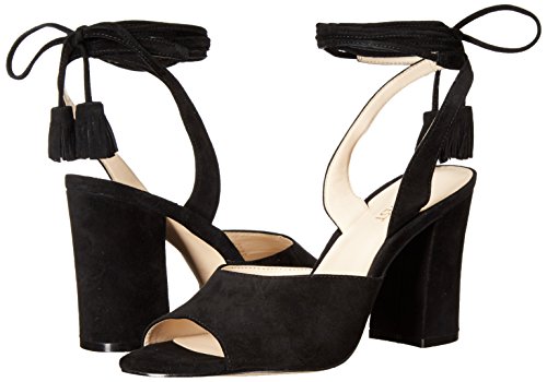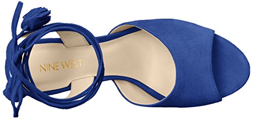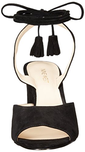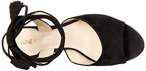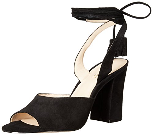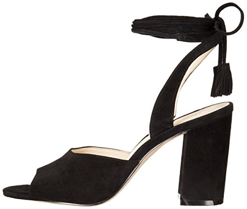Two-piece dress sandal featuring peep-toe opening and tassel-finished ankle wrap