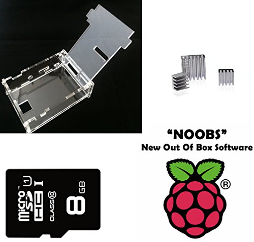 Clear Case with 3 Heatsinks 8GB NOOBS Preloaded Micro SD Card for Raspberry Pi 3 Model B