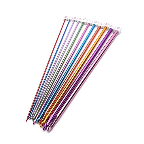 Haishell 11 Pcs 10.6 Inch Multicolour Aluminum Tunisian/afghan Crochet Hooks Needles(2mm to 8mm)