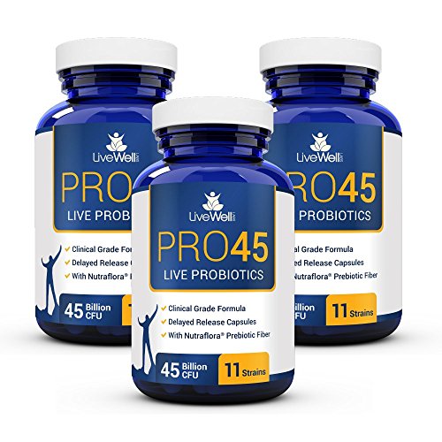 PRO45: #1 CLINICAL GRADE Probiotic Formula, 45 billion CFU, 11 patented strains. Dairy Free. Delayed release veggie caps. Promotes immune and digestive health. 180 Day Supply