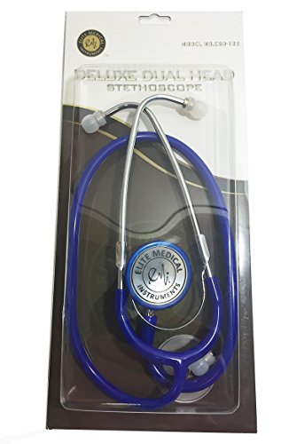 -. Feature : Brand: Elite Medical Instruments / Deluxe Dual Head stethoscope / Matching Blue Light weight aluminum chest piece / PVC tubing