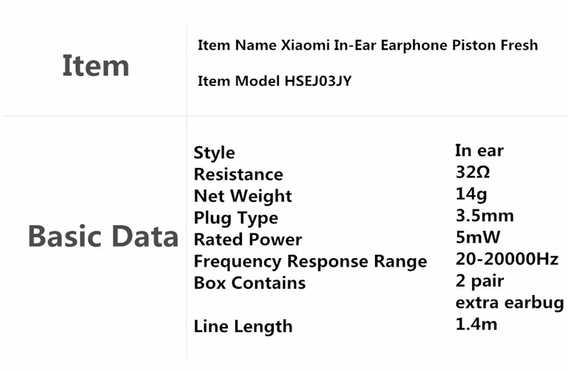 Model Number:Xiaomi Piston earphones Fresh Edition