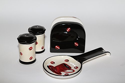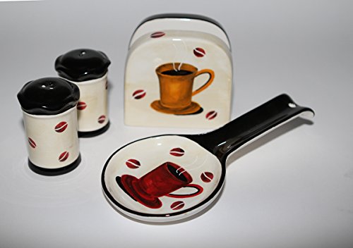 • Tuscany Colorful Coffee Bean, Hand Painted Ceramic Stove Top Set of 4, Salt, Pepper, Napkin Holder and Spoon Rest, 83325/28 by ACK